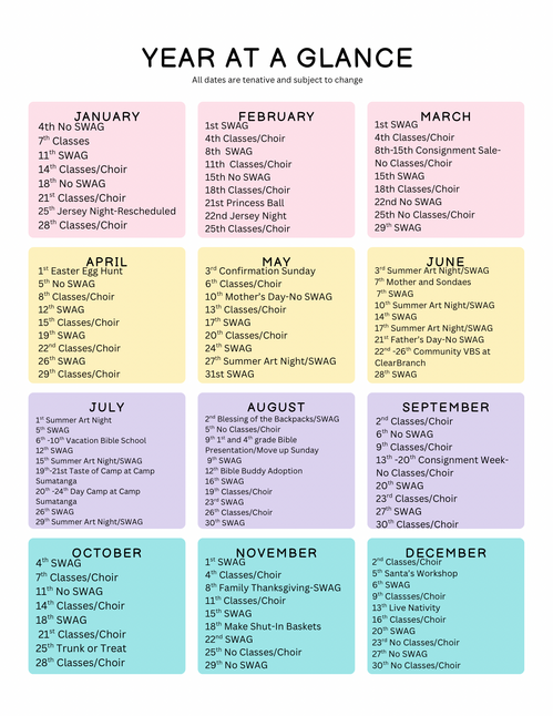 6:30 pm - 7:30 pm S.W.A.G. Activity and Lesson in Children's Room (upstairs) Choir to follow.